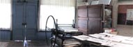 Now it is a smoke free zone with the sounds of billiard cues being replaced by Beethoven, Mozart & Vivaldi. Two etching presses now sit on concrete piers that were cut into the floor to offer a firm base for the billiard tables. Paint splattered work benches, comfortable seating, stereo and library take up the rest of the studio. For musicians, the studio has perfect acoustics and several concerts have been performed in the space over the last 25 years by visiting Sydney musicians. A door at one ends leads into a small "secret garden" which connects to the garden studios.