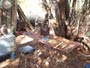 At the bottom of the garden, under the shade of a plum tree is an outdoor stone carving area.
